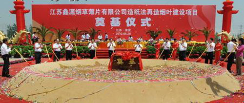 趙洪順在奠基儀式上代表國家煙草專賣局、中國煙草總公司對項目奠基表示祝賀,他對江蘇中煙近年來取得的發(fā)展業(yè)績給予高度評價。對于項目下一步建設,他要求,江蘇中煙要切實加強對項目建設的過程管理,積極做好造紙法再造煙葉的應用準備,在卷煙減害降焦方面取得更大的進步和成效,在更高水平、更高層次上推動品牌發(fā)展;江蘇鑫源要以打造“國內(nèi)一流、國際先進”的造紙法再造煙葉生產(chǎn)線為己任,高標準推進項目建設,嚴格程序,規(guī)范運作,狠抓工程建設質(zhì)量和進度,全力打造“陽光工程、廉潔工程、優(yōu)質(zhì)工程”,為江蘇煙草工業(yè)持續(xù)、健康發(fā)展,為淮安地方經(jīng)濟社會建設作出積極貢獻。